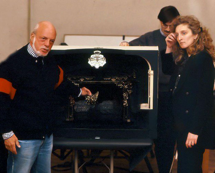 Hal Prince and Maria Björnson with the Phantom set model, 1986