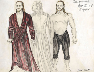 Erwin Schrott and Gerald Finley shared the role of Don Giovanni which was created for this production in 2002 by Bryn Terfel, who is recognisable in the costume drawing above. |