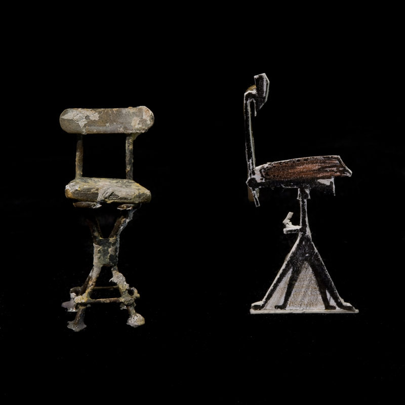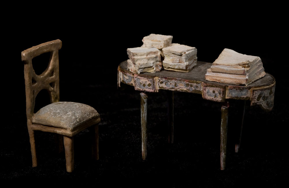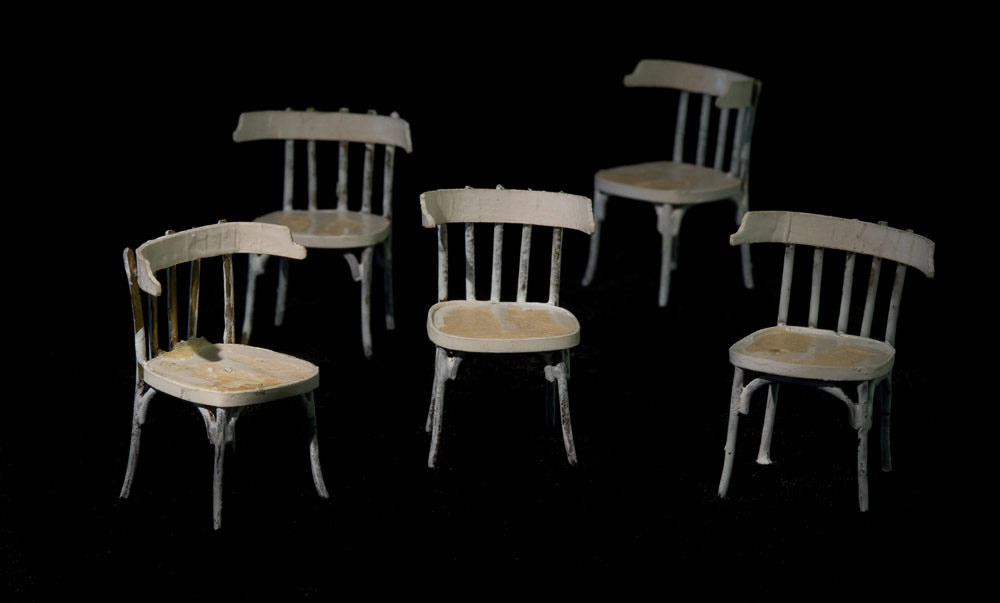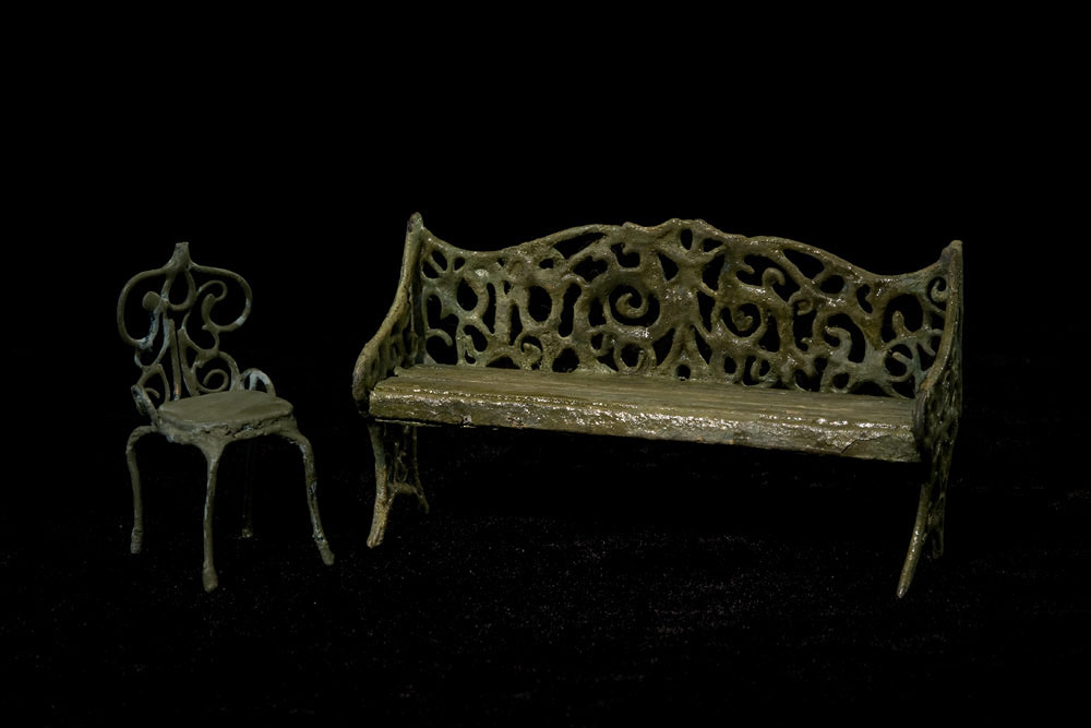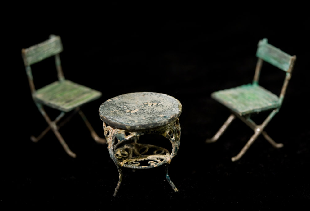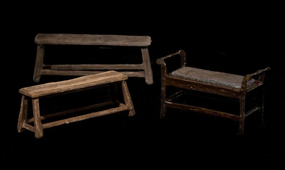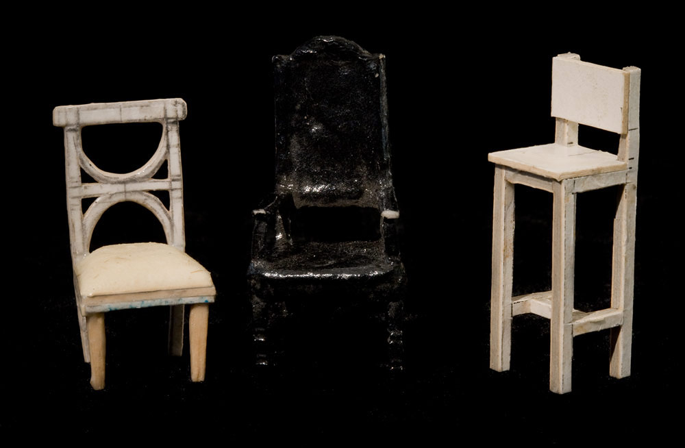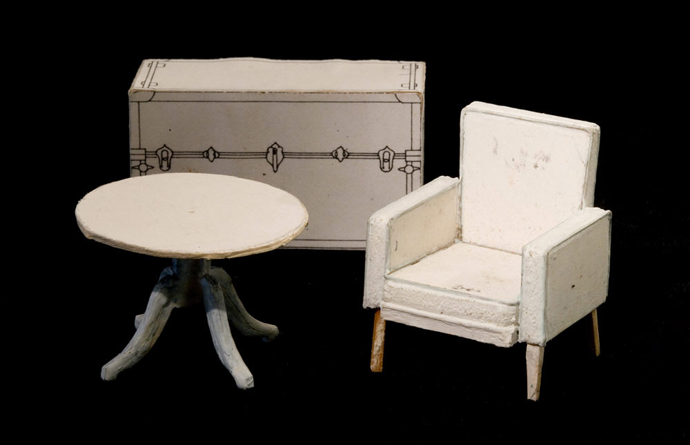 The following photographs are of the tiny furniture and objects Maria and her assistants made for the set models. They are of doll's house size and are often very detailed.