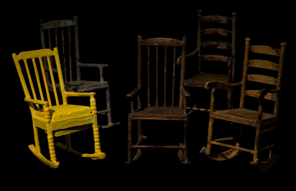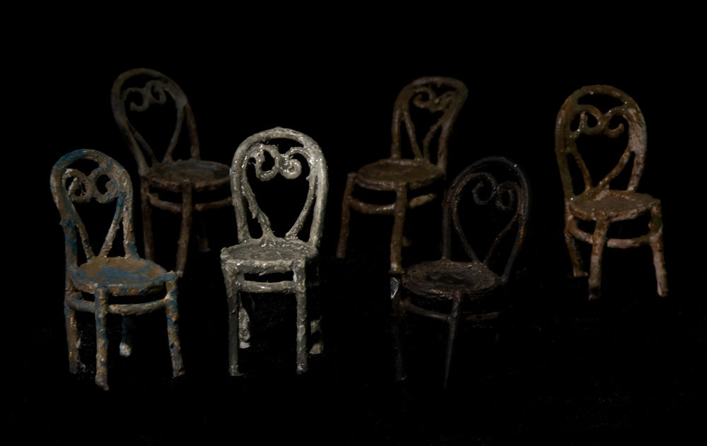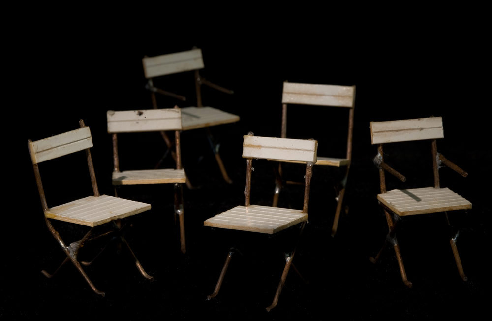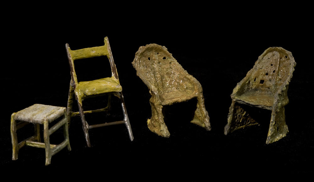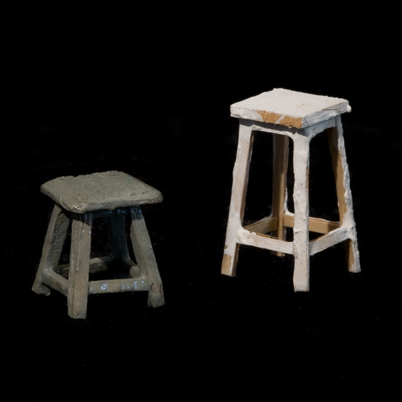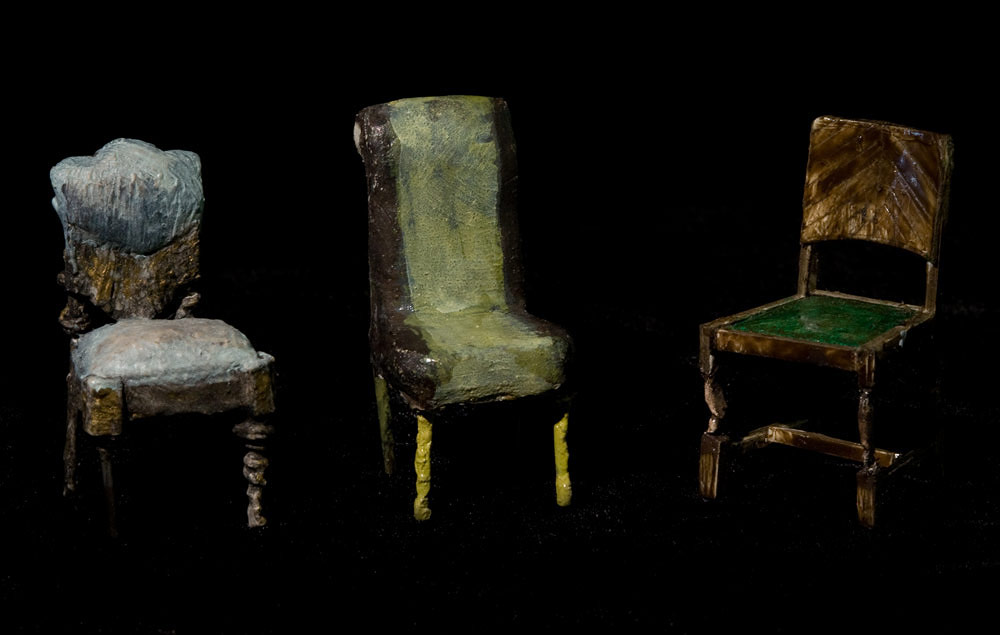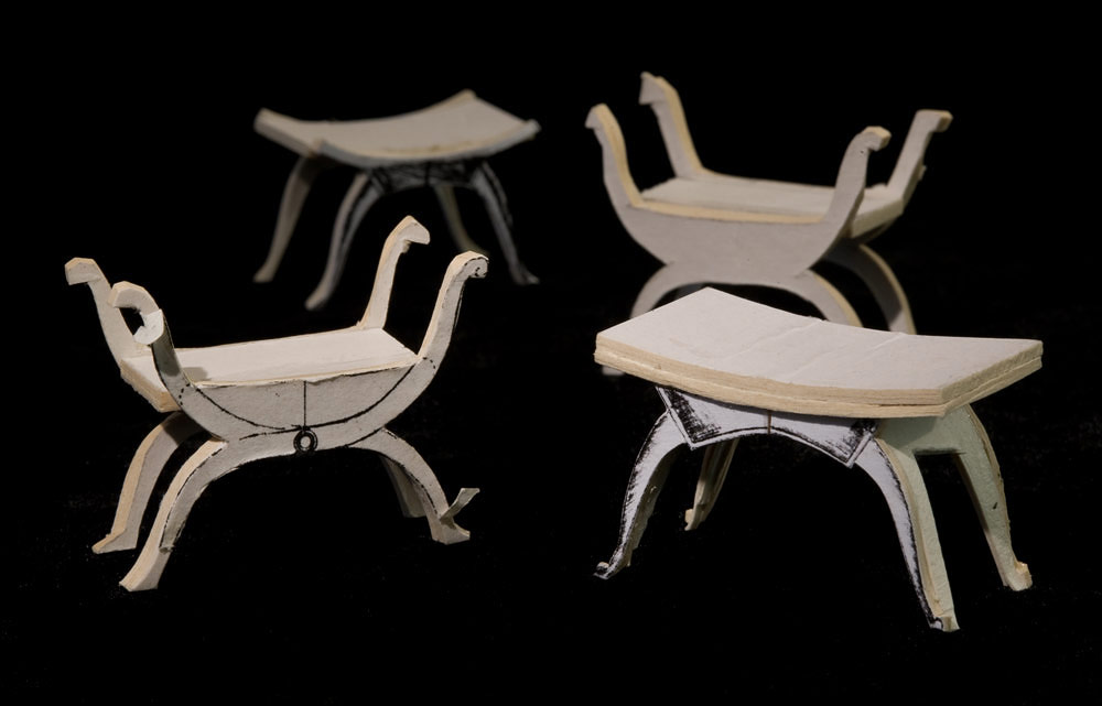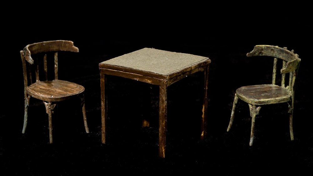 The following photographs are of the tiny furniture and objects Maria and her assistants made for the set models. They are of doll's house size and are often very detailed.